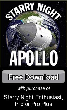 Optimized for projection, Starry Night Podium provides an intuitively designed interface on your computer while projecting an impressive, uncluttered view. You can see how the sky will look tonight, tomorrow, or far into the past or future. You can view the stars as they appear from your own backyard, from a country on the other side of the world, or from another planet. You can witness a total eclipse from the Moon, watch the Sun set from the surface of Mars, ride a comet or even venture out into the realm of galaxies. You are limited only by your curiosity.